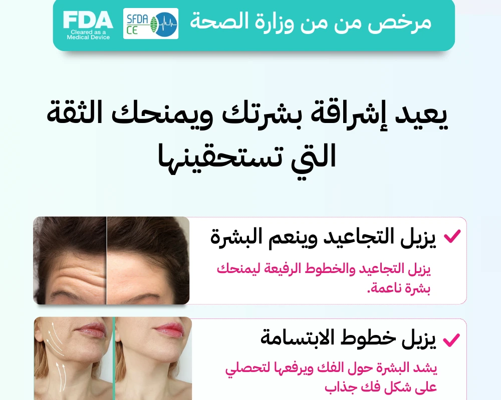يستاهل كل ريال افضل جهاز جربتو كان وجهي مليان خطوط وكيف صار بس من استخدامه لمدة اسبوعين بدون فيلر ولا بوتكس ♥️ رائع جدا جدا